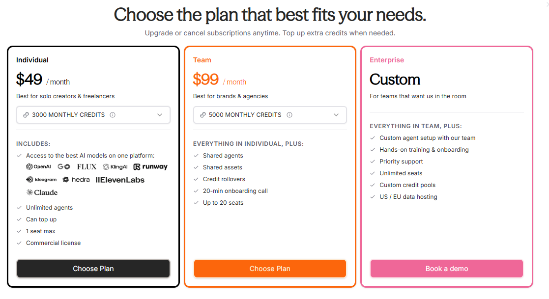 La meilleure façon de la décrire ? C'est comme un Zapier, mais pour le marketing visuel. Vous construisez vos propres agents, vous les configurez une fois, et ils produisent vos contenus à la demande.