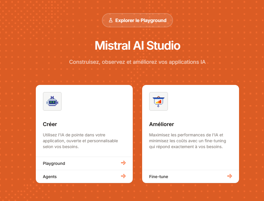 Mistral AI Studio est la plateforme technique de Mistral, principalement destinée aux développeurs et équipes data. Elle centralise l'accès à l'ensemble des modèles et des services avancés de Mistral en un seul endroit.
