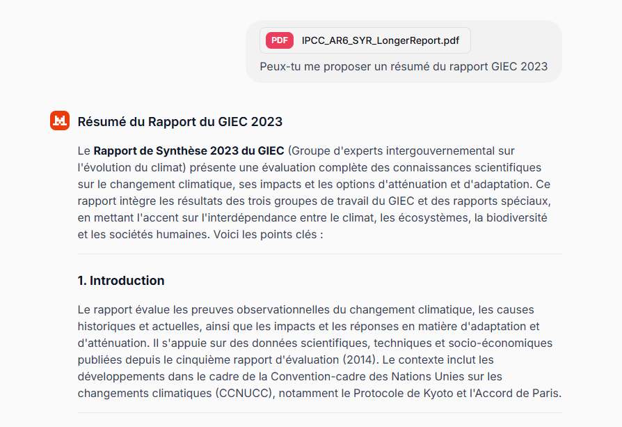 - L’assistant interne : Mistral AI peut aider les équipes à réaliser différentes tâches et à automatiser leurs processus. Par exemple, l’outil vous aide à analyser de grandes quantités de données, réaliser des analyses prédictives, etc.