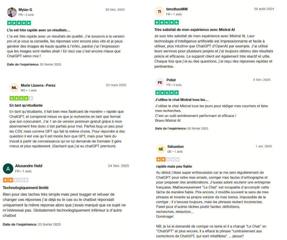 Pour vous donner une vision plus globale de l’outil, on a aussi pioché quelques avis en ligne sur Mistral AI.
