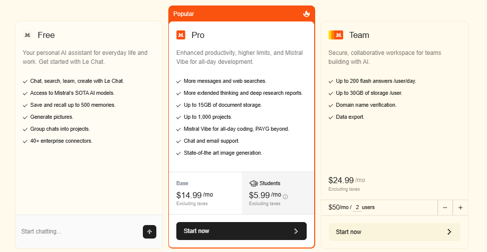 Mistral AI propose une gamme de modèles d'intelligence artificielle répartis en deux grandes catégories : les modèles gratuits et les modèles “Premier”.